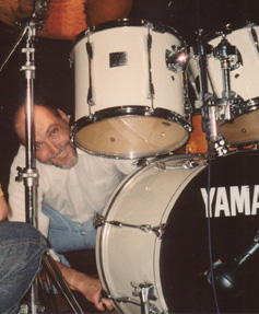 | Doug Peeks through the drums at sound check in Atsugi Japan, October 2002...Oh no! "Peking Doug" |