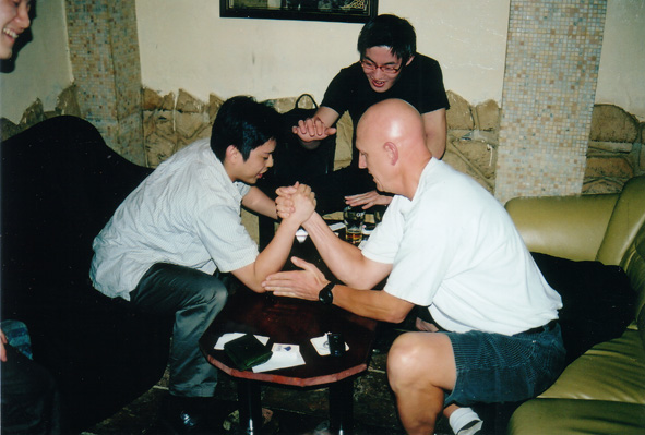 | Payback! Jeff wins an arm wrestling match with one of the locals! Rupongi Japan October 2002 |