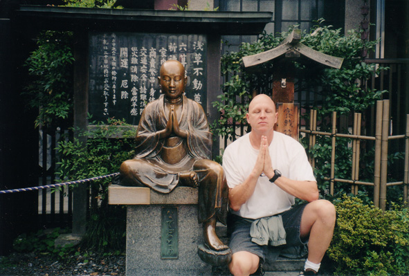 | On a site seeing tour, Jeff finds he bears an uncanny resemblence to this Buddah statue and decides to stop for a moment of prayer...I knew there was a reason we came to Japan! |