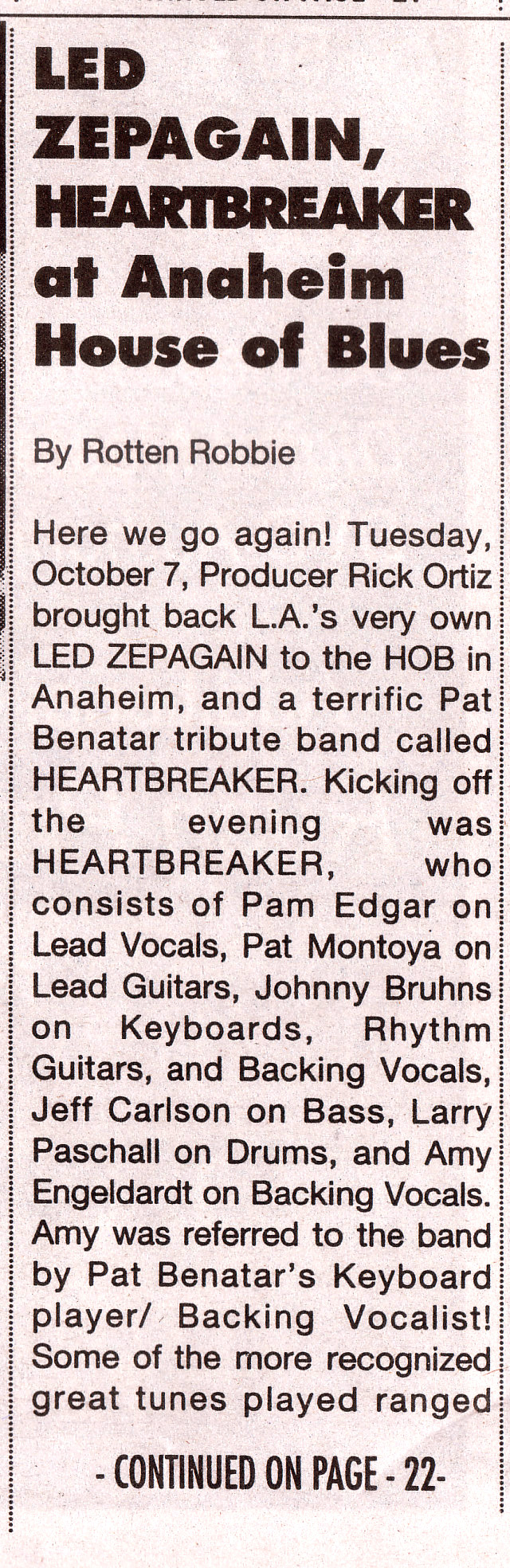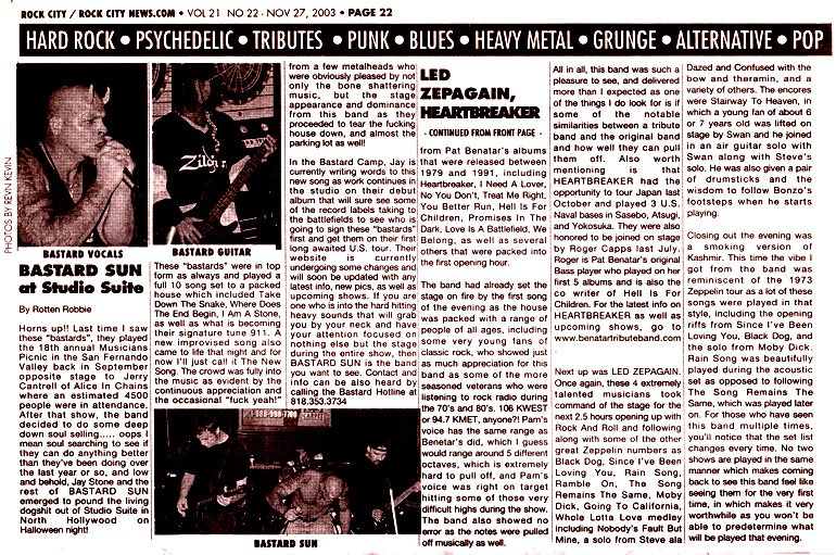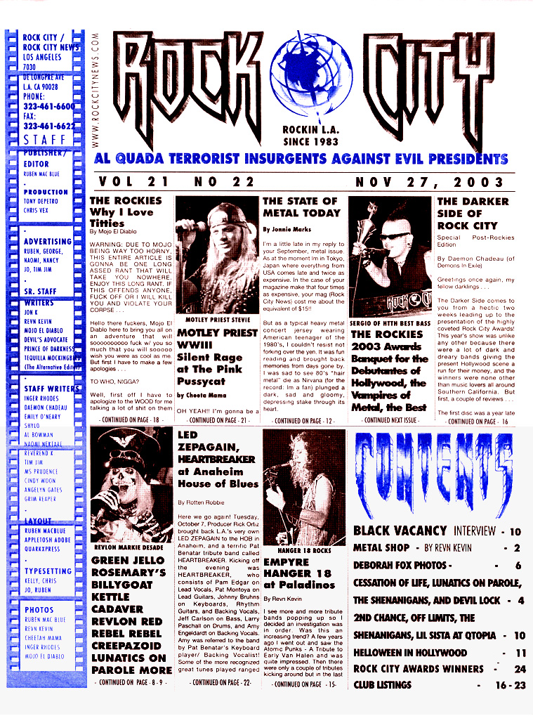 Published Review Rock City News November 27, 2003 - House of Blues, Anaheim, CA